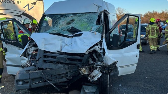 Ratingen. Am Freitag Nachmittag kam es zu einem schweren Auffahrunfall auf der A3 mit einer eingeschlossenen Person und zwei mittelschwerverletzten Personen. Ein Transporter war auf einen LKW aufgefahren, wobei der Beifahrer des Transporters in dem Fahrzeug eingeschlossen wurde.