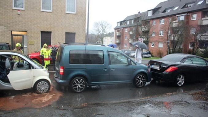 Gegen 14 Uhr war ein 21 Jahre alter Ratinger mit seinem Smart Fortwo auf der Homberger Straße in Fahrtrichtung Homberg unterwegs. Auf Höhe der Einmündung Rodeskothen missachtete der junge Mann jedoch verkehrsbedingt wartende Fahrzeuge. Er stieß ungebremst mit einem vor ihm wartenden VW Caddy zusammen. Aufgrund der Wucht der Kollision stieß der VW wiederum gegen einen vor ihm befindlichen Peugeot 308.