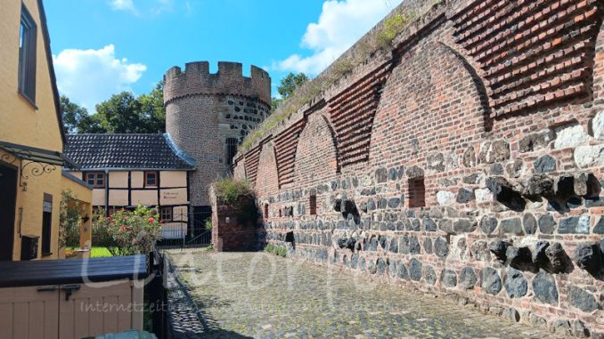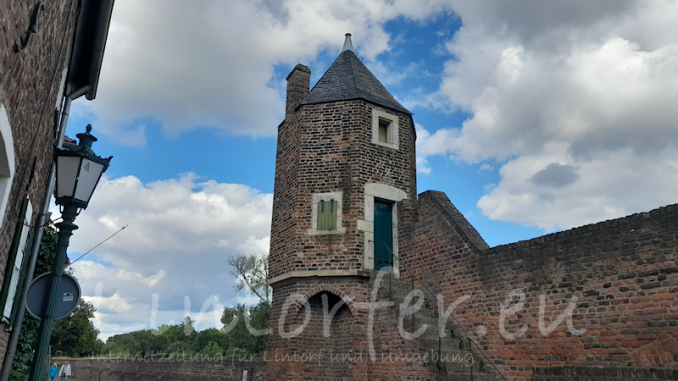 Lintorf. Von Lintorf aus sind es knapp vierzig Kilometer bis auf die andere Rheinseite zur mittelalterlichen Zollfeste Zons. Für Familien mit Kindern ist die Fahrt mit der Rheinfähre von Urdenbach aus sicherlich schon ein erstes Highlight. Vom Fähranleger (in direkter Nähe liegt ein großer Parkplatz) sind es gut 500 Meter bis zum Rheinturm, einem der Eingänge zur Festung. Von dort, wie von allen anderen Eingängen auch, kann man die Altstadt entlang der Festungsmauer gut einmal zu Fuß umrunden.