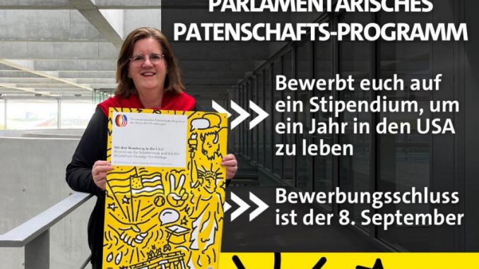 Niederberg. Kerstin Griese möchte die Patenschaft für einen Jugendlichen übernehmen, der ab Sommer 2024 mit einem Bundestagsstipendium in die USA gehen möchte. Bis zum 8. September 2023 können sich Schülerinnen und Schüler, Azubis und junge Berufstätige aus Niederberg bewerben. Weitere Information zum Stipendium und zur Suche von Gastfamilien im Niederbergischen unter www.kerstin-griese.de/ppp24.