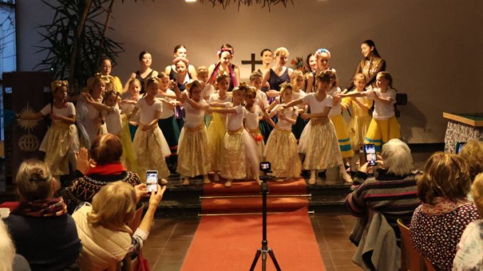 Es war wieder soweit und Tänzerinnen im Alter von sechs bis vierzehn Jahren und dem ebenfalls von Schulleiterin Silke Hester geleiteten Aquila Dance Team der KG Düsseldorfer Nordlichter waren in Kaiserswerth im Altenzentrum Stammhaus in der Kulturkirche zu Gast. Dort erfreuten sie die Senioren sowohl mit Cheerleading-Tanz inklusive akrobatischen Einlagen zu flotten englischen Weihnachtsliedern als auch mit klassischem Ballett unter anderem zu Musik von Franz Schubert.