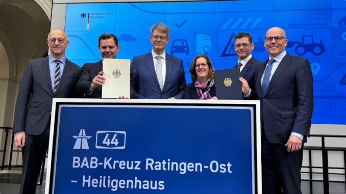 Ratingen. Der Lückenschluss der A44 zwischen Ratingen und Heiligenhaus kann endlich weitergebaut werden. Das teilen die Bundestagsabgeordneten Peter Beyer (CDU) und Kerstin Griese (SPD) mit. Verkehrsminister Patrick Schnieder hat im Beisein der beiden Ratinger Abgeordneten die Freigabe für das fehlende Autobahnteilstück erteilt. Zuvor hatte der Bundestag mit seinen Haushaltsbeschlüssen auch für das zentrale Infrastrukturvorhaben im Kreis Mettmann grünes Licht gegeben.