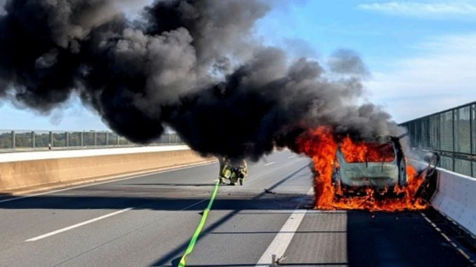 Breitscheid/Mülheim. Am Freitag, 18. Oktober, um 10:57 Uhr wurde die Feuerwehr Ratingen zu einem brennenden Auto auf der Ruhrtalbrücke alarmiert. Bei Eintreffen der ersten Kräfte brannte das Fahrzeug bereits in voller Ausdehnung. Ein Trupp unter Atemschutz nahm ein C-Rohr für die Löscharbeiten vor. Damit konnte der Brand schnell gelöscht werden. Personen wurden nicht verletzt. Die Brandursache ist ungeklärt. Im Einsatz waren der Standort Breitscheid und ein Löschfahrzeug der Berufsfeuerwehr.