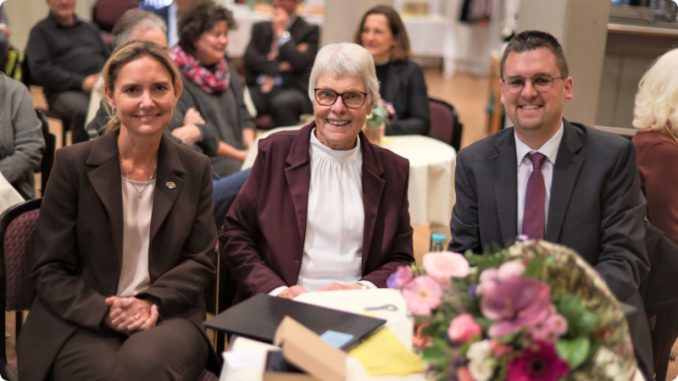 Ratingen. Aufgrund ihres langjährigen ehrenamtlichen Engagements vor allem im sozialen Bereich ist die Ratingerin Ingrid Bauer mit dem Verdienstkreuz am Bande des Verdienstordens der Bundesrepublik Deutschland ausgezeichnet worden. Die Ordensübergabe durch Landrätin Bettina Warnecke und Bürgermeister Patrick Anders, der in einem kurzen Grußwort Ingrid Bauer für ihren unermesslichen Einsatz dankte, erfolgte im Beisein ihrer Familie, von Freunden und Weggefährten in einer Feierstunde im Lesecafé des Medienzentrums.