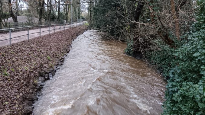 Lintorf. Am Donnerstagmorgen, 4. Januar, führte der Dickelsbach nach den heftigen Regenfällen des Vortages und der vorangegangenen Nacht wieder viel Wasser. Der sonst gemächlich durch Lintorf fließende kleine Bach floss deutlich schneller als üblich. Da es in den kommenden Tagen nicht regnen soll, scheint die Gefahr von Hochwasser in Lintorf eher gering.