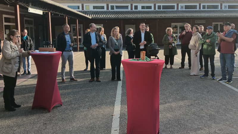 Auch für Bürgermeister Klaus Pesch rundet die Eröffnungsfeier einen bemerkenswerten Prozess ab. „Da unsere Bauverwaltung an vielen anderen Stellen im Stadtgebiet gebunden ist, wäre es für die Stadt nicht möglich gewesen, dieses Bauvorhaben in dieser Schnelligkeit abzuwickeln. „Mit Christa Seher-Schneid als Vorsitzende des ÜMB-Vereins und Rolf Steuwe konnten zwei Ehemalige aus der Stadtverwaltung für das Projekt gewonnen werden, hinzu kamen mit Horst Sprenger (früher Stadtwerke Ratingen) und Thomas Schroeder zwei erfahrene Fachleute hinzu. Wir dürfen uns glücklich schätzen, eine so produktive Zusammenarbeit mit dem beauftragten Container-Hersteller MR Logistics und den eingesetzten örtlichen Unternehmen erlebt zu haben. Alle Zahnräder bis hin zum unermüdlich aktiven Hausmeister Klaus Klink haben ineinandergegriffen, um das Projekt zum Erfolg zu führen“, so Pesch. Er lobte auch die besondere Rücksichtnahme der eingebundenen Unternehmen während des Bauprozesses, die ja teilweise während der Betriebszeiten der Schule und des benachbarten Kindergartens gearbeitet hatten.