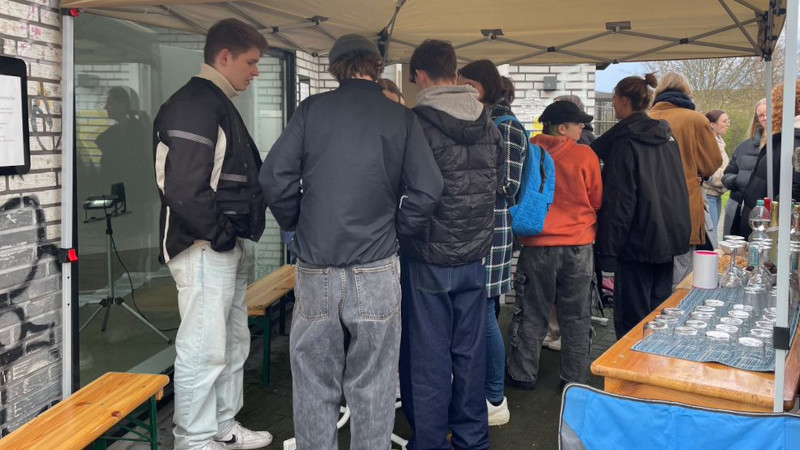 Der Kunstleistungskurs nutzte zur Konzeptentwicklung innovative Ansätze, darunter die Integration von ChatGPT, um Ideen zu generieren. Diese kollaborative Herangehensweise führte zu einer einzigartigen Installation. Die Ausstellungseröffnung am vergangenen Freitag war, obwohl pünktlich zur Eröffnung der Regen einsetzte, sehr gut besucht.