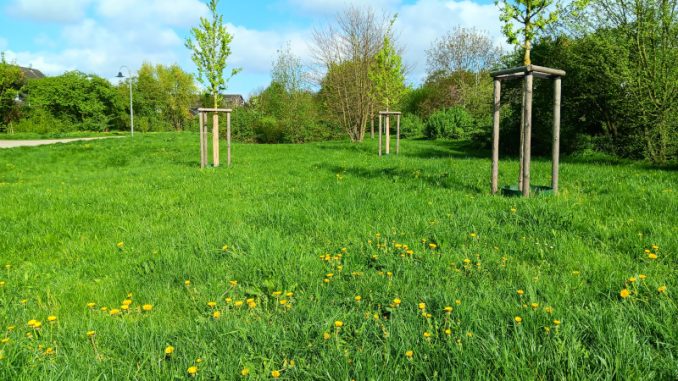 Lintorf. Im Februar vergangenen Jahres war die Grünanlage in der Siedlung an der Fritz-Windisch-Straße einer Verjüngungskur unterzogen worden. Inzwischen wächst und gedeiht es in dem Grünstreifen mächtig. Derzeit blüht hauptsächlich der Löwenzahn zwischen dem satten Grün der Wiesen und Sträucher.