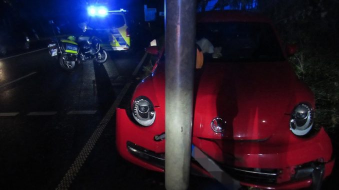 Bei der Unfallaufnahme stellten die eingesetzten Polizistinnen und Polizisten starke Deformationen an dem VW Beetle fest. Auch der Zaun sowie die Ampel wiesen Schäden auf. Die Schadenssumme beläuft sich schätzungsweise auf insgesamt 11.000 Euro.