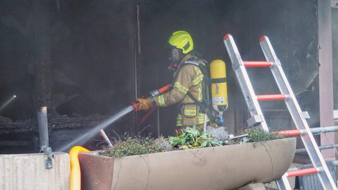 Ratingen. Im Erdgeschoss brennt es, Flammen schlagen aus dem Gebäude und starker Rauch quillt aus den Gebäudeöffnungen. Eine Person soll sich noch in der Wohnung befinden. Sofort gehen zwei Trupps der Feuerwehr unter Atemschutz mit Löschrohren über den Balkon und den Treppenraum vor. In der brennenden Wohnung finden sie eine Person, die sie über den Balkon ins Freie heben. Der schwer verletzte Mann wird vom Notarzt und dem Rettungsdienst behandelt und in ein Krankenhaus gebracht. Weitere Personen sind nicht in Gefahr. Der Brand selbst wird schnell unter Kontrolle gebracht.