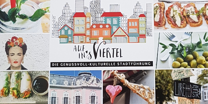 „Auf ins Viertel“ möchte mit den Stadtführungen auf die kleinen, meist inhabergeführten Betriebe aufmerksam machen und möchten damit den lokalen Handel stärken. Abstecher sind unter anderem Leib und Rebe, ein alteingesessenes Bistro, ein Weltladen und weitere kleine, interessante, überwiegend Inhaber geführte Betriebe.