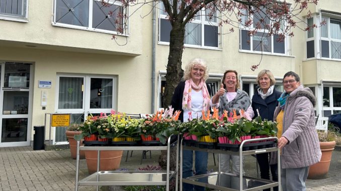Der Förderverein von Haus Salem hatte bei Schlüters Hofverkauf für alle Bewohner ein österlich dekoriertes „flammendes Käthchen“ besorgt. Die Vertreterinnen des Fördervereins Angelika Kompalik und Jutta Heinrici verteilten – gemeinsam mit Einrichtungsleiterin Claudia Witte und der ehrenamtlichen Mitarbeiterin Doris Wächtershäuser die farbenfrohen Geschenke in allen Wohnbereichen.