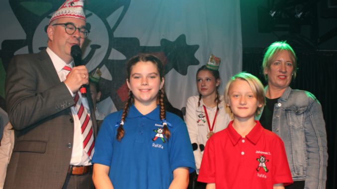 Die Präsidenten des RaKiKa führten durch ein buntes Programm. Die Kindergarden der Prinzengarde Blau-Weiß, Prinzengarde Rot-Weiß, der Stadtgarde Funken Rot-Wiss und der Spiesratze Grün-Weiß präsentierten ihre neuen Tänze.