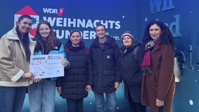 Ratingen. Die städtischen Kinder- und Jugendzentren haben sich auch in diesem Jahr an der großen Spendenaktion „WDR 2 Weihnachtswunder“ beteiligt und durften sich am Ende über die beeindruckende Summe von 6.250,11 Euro freuen. Die Teams vom Jugendzentrum LUX und vom JUZ Phönix brachten die Spende persönlich zum WDR 2-Glashaus nach Essen.