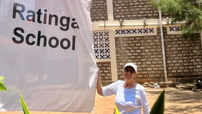 Lintorf. Eine gute Idee trägt Früchte. Durch die Spenden einzelner Sponsoren konnten Irmel Hinssen, Doris Jacobs und Peter Mentzen für die Kenia-Hilfe einige Patenschaften vermitteln. Besonders erfreulich ist, dass Hinssen wieder einmal nach Kenia reisen konnte. Vor 30 Jahren hat sie sich mit dem „Kenia-Virus“ infiziert und im Laufe der Jahre mit ihrer Liebe zu diesem Land und seinen Bewohnern viele Menschen angesteckt und sie zu einer sinnvollen Hilfe zur Selbsthilfe angeregt. Das Foto zeigt sie auf dem Schulgelände mit der Fahne „ihrer“ Ratinga School.