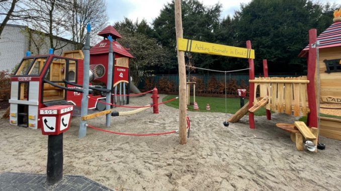 Wenn es soweit ist, können sich die Kinder auf eine attraktive Spielanlage freuen. Da sich das 435 Quadratmeter große Areal im Grünzug direkt neben der Freiwilligen Feuerwehr Lintorf befindet, greift es dieses Motto natürlich au: „Feuerwehr 112 – Hilfe rufen, helfen und Hilfe annehmen!“ Damit soll auch das Ehrenamt durch die Anlage gewürdigt werden. Mit Notrufsäulen, Feuerwehrauto mit Wache, Löschschläuchen und einem „brennenden“ Haus sollen die kleinen Spielplatzbesucher schon von klein auf für das Thema rund ums Helfen sensibilisiert werden und Einsätze nachspielen können.