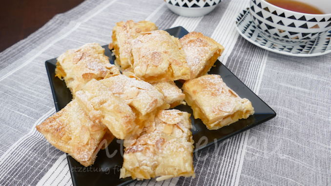 Lintorf. Köstlich und mit einer Rolle Blätterteig und einem Apfel im Haus auch jederzeit mal eben schnell zuzubereiten. Die mit Vanillepuddingpulver angedickten Äpfel ergeben eine herrlich fruchtig-süße Füllung.