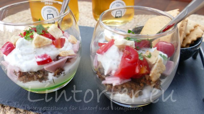 Lintorf. Nach der erfolgreichen Radtour noch ein kühles Bier auf der Terrasse genießen und dazu auf vollendete Art ein Butterbrot genießen. Unser heutiges Abendbrot kann man gut vor der Radtour zubereiten und im Kühlschrank durchziehen lassen. Das Butterbrot im Glas ist aber natürlich auch ein perfekter Snack für den Spieleabend mit Freunden.
