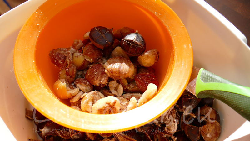 Lintorf. Wenn den Redaktionsmitgliedern beim Kurzurlaub an der südlichen Weinstraße unzählige Esskastanien vor die Füße fallen, was liegt da näher als diese aufzusammeln, um zuhause dann etwas damit zu kochen oder zu backen? Gesagt, getan und deshalb stellen wir heute einen, wie der Pfälzer sagt, Keschdekuche vor. (Keschde = Kastanie, Anm. d. Red.) Rezepte dazu gibt es im Netz reichlich zu finden, aber wir haben uns für einen Mix aus verschiedenen Anleitungen entschieden.