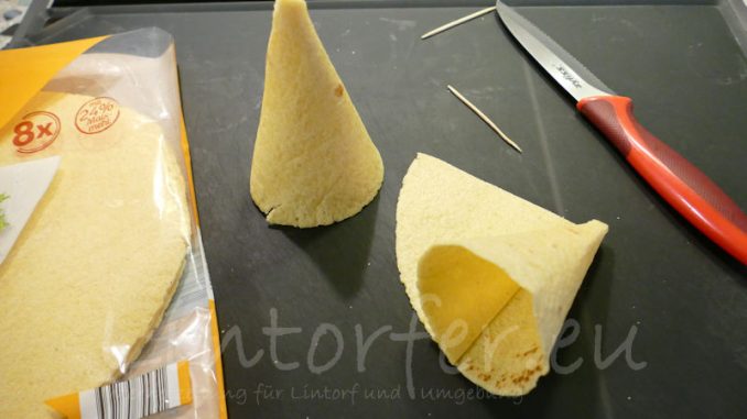 Lintorf. Kaum ist der Jahreswechsel vollbracht stehen schon die nächsten Feiertage vor der Tür, nämlich die der fünften Jahreszeit. Viele Jecken feiern dann auch zuhause die eine oder andere Karnevalsparty. Da sind schnell zubereitete Snacks wie unsere gefüllten Hörnchen aus Tortilla-Fladen einfach unschlagbar. Es gibt spezielle Ständer, die ursprünglich für Eiswaffeln gedacht sind aber ein paar kleine Schnapsgläser erfüllen den gleichen Zweck.
