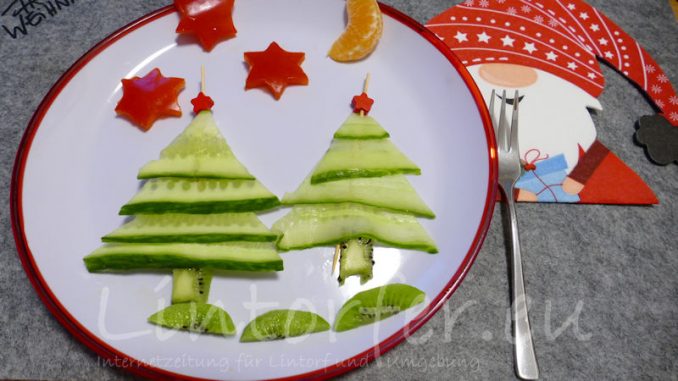 Lintorf. Lachstatar, Muschelsüppchen oder Rote-Beete-Carpaccio sind wunderbare Vorspeisen für ein festliches Weihnachtsessen. Bei den Kleinsten der Familie werden sie aber sicher nicht besonders gut ankommen. Deshalb zeigen wir heute einen Vorspeisenteller, den die Kinder lieben werden, ist er doch eine willkommene, geschmackliche Abwechslung bei all den Plätzchen und Süßigkeiten, die es an Weihnachten gibt. Noch mehr Spaß macht der Teller, wenn man ihn vorab in der Küche selbst anrichten darf. Mit ein bisschen Glück möchten dann auch Mama und Papa oder Oma und Opa davon kosten.