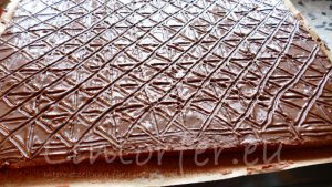 Für ein Blech: 250g weiche Butter, 225g Zucker, 5 Eier Gr. M, 1 Prise Salz, 250g Mehl, 2 Tl Backpulver, 50g Backkakao, 200g gemahlene Mandeln, 1 Tl Zimt, 2 Tl Lebkuchengewürz, 200 ml Milch, 200g Zartbitterkuvertüre