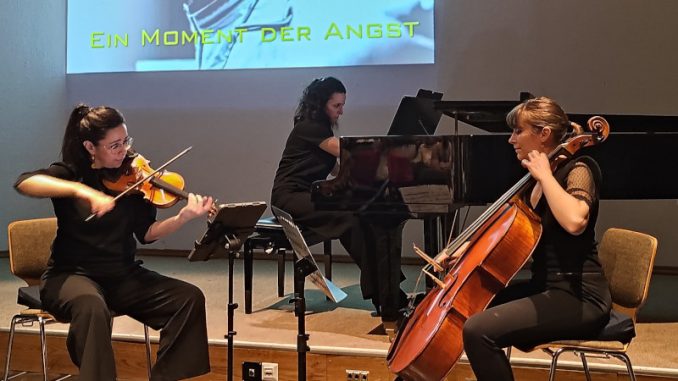 Hösel. Das Sua Trio gastierte beim Kulturkreis Hösel. Engagiert vom Kulturkreis spielten die drei Musikerinnen Mariana Hernández (Violine), Juliette Cürlis (Violoncello) und Itxaso Etxeberria (Piano) zunächst die Komposition „Space Jump“ von Fazil Say, die den Stratosphärensprung des Extremsportlers Felix Baumgartner musikalisch verarbeitet. Das Sua Trio präsentierte das Stück parallel zur Vorführung der Videos des Rekordsprungs und machte damit Neue Musik für seine Zuhörerschaft in einzigartiger Weise erlebbar.