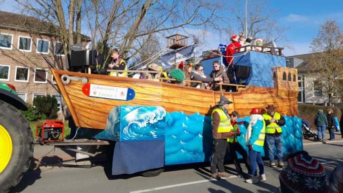Lintorf. Die Sonne lachte am Sonntagvormittag. Am Nachmittag zeigten sich mehr Wolken am Himmel. Doch das störte die zigtausend Närrinnen und Narren entlang dem Zugweg beim Lintorfer Kinderkarneval nicht. Noch mehr freuten sich die Zugteilnehmer. Sie hatten schließlich viele Monate an ihren Kostümen oder auch Wagen für diesen Tag gearbeitet. Besonders glücklich war natürlich das Kinderprinzenpaar. Johannes und Emma freuten sich gemeinsam mit ihren Schirmherren Carsten Droste und Reinhard Cechura auf den Höhepunkt der Session, lautete das Motto über dem Wagen doch: „750 Jahre Ratingia, der RaKiKa rockt das Jubeljahr“.