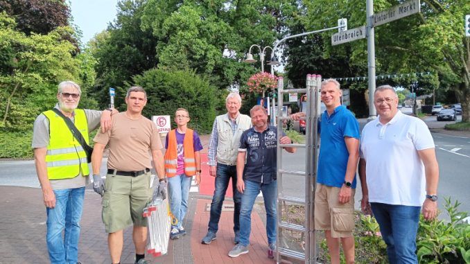 Die verschiedenen Formationen der Lintorfer Bruderschaft machten sich in den vergangenen Tagen an die Arbeit. Jede Formation ist für bestimmte Straßen zuständig. Und das wichtigste: Zum Möschesonntag müssen bereits alle Wimpel über den Straßen hängen.