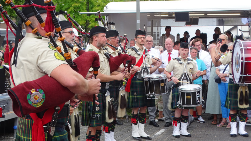 Die Rhine Area Pipes and Drums waren der zweite Höhepunkt an diesem sonnigen Nachmittag. Mit ihrer schottischen Musik begeisterten sie die Lintorfer. Erst nach mehreren Zugaben durften die Musiker die Heimreise in die benachbarte Landeshauptstadt antreten.