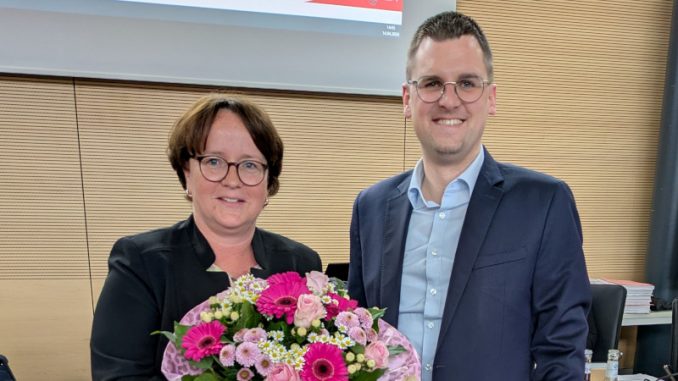 Ratingen. Sabine Klocke (links) ist in der Ratssitzung am 14. April einstimmig zur Beigeordneten gewählt worden. Im Verwaltungsvorstand wird sie künftig zuständig sein für die Fachbereiche Jugend und Schule, Personal und Organisation. Die langjährige Leiterin des Ratinger Jugendamtes setzte sich im Bewerbungsverfahren gegen 30 Mitbewerber durch – aufgrund ihrer ausgeprägten Praxiserfahrung sowie ihrer bereits unter Beweis gestellten Führungs- und Kommunikationskompetenz. Seit einem halben Jahr ist Sabine Klocke als Leiterin eines Interimdezernats bereits zuständig für Organisation und Personal. Zu ihren vordringlichen Aufgaben wird in den nächsten Jahren die umfassende Modernisierung der Verwaltung gehören.