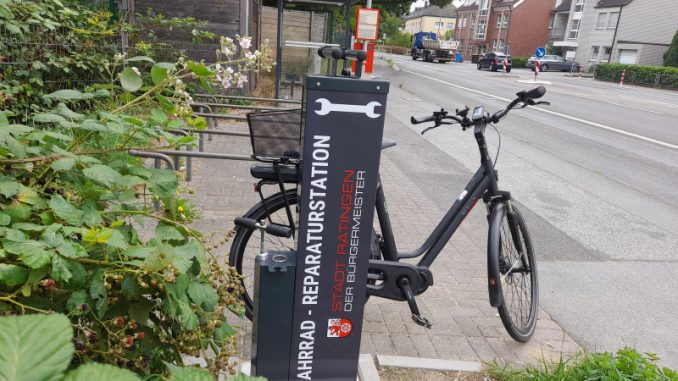 Lintorf. Seit kurzem gibt es an der Haltestelle Tiefenbroicher Straße die zweite Fahrrad-Reparaturstation in Lintorf. Die erste steht am alten Rathaus und wurde Mitte Mai eröffnet (Neue Fahrrad-Reparaturstation am Rathaus). Während der geneigte Radfahrer sein Zweirad aufpumpt, kann er gleichzeitig von den frischen Brombeeren naschen, die unmittelbar an der Reparaturstation wunderbar gedeihen.