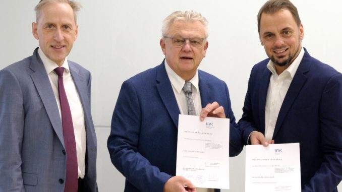 Hauptgeschäftsführer Axel Fuhrmann (von links) mit Michael Blum und Sascha Möller nach der Verleihung der Bestellungsurkunde (Foto: Wilfried Meyer)