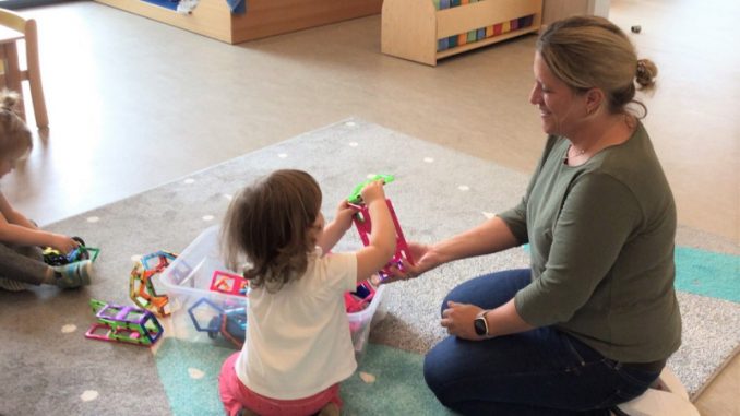 Dadurch verdoppelt sich die Kapazität der städtischen Kindertagesstätte Eggerscheidt auf 60 Kinder. 18 der neuen Besucherinnen und Besucher, überwiegend unter dreijährige Kinder, werden ab sofort betreut, weitere zwölf ab 1. September. Für eine begrenzte Zeit werden sie sich mit den Kindern in den bereits bestehenden Gruppen das Außengelände teilen. Die Arbeiten für das erweiterte Außengelände können jetzt erst beginnen. Das werden für die Kinder sicherlich wieder spannende Zeiten. Denn schon beim Bau des Gebäudes haben sie die arbeitenden Bagger fasziniert beobachtet.