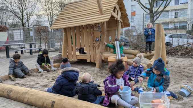 Die Stadt Ratingen hat rund 45.000 Euro in die Erneuerung der Außenanlage investiert. Jetzt freuen sich die Familien auf gutes Wetter und darauf, Blumen in die neue Pflanzfläche zu säen.