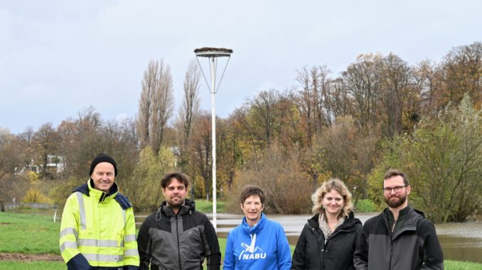 Wittlaer. Entlang des Rheins zwischen Wittlaer und Kaiserswerth gibt es 76 Hektar naturnahe Kulturlandschaft. Dort befindet sich das Wasserschutzgebiet der Stadtwerke Duisburg. Das Wasserschutzgebiet ist ein wichtiger, weitestgehend naturbelassener und geschützter Rückzugsort für zahlreiche Tierarten. Ab sofort sollen sich an der Grenze zu Duisburg neben zahlreichen anderen Tierarten auch Störche heimisch fühlen. Denn gemeinsam mit der Biologischen Station Haus Bürgel, dem NABU Düsseldorf und der Stadt Düsseldorf haben die Stadtwerke Duisburg jetzt mitten in diesem geschützten Raum einen Storchenmast als Nisthilfe für die Langschnäbel aufgestellt. Die Stadtwerke Duisburg haben dort in einem aufwändigen Verfahren Brunnenanlagen abgebaut und diese Flächen renaturiert. Bei diesen Arbeiten wurde dann auch ein Storchenmast aufgestellt.