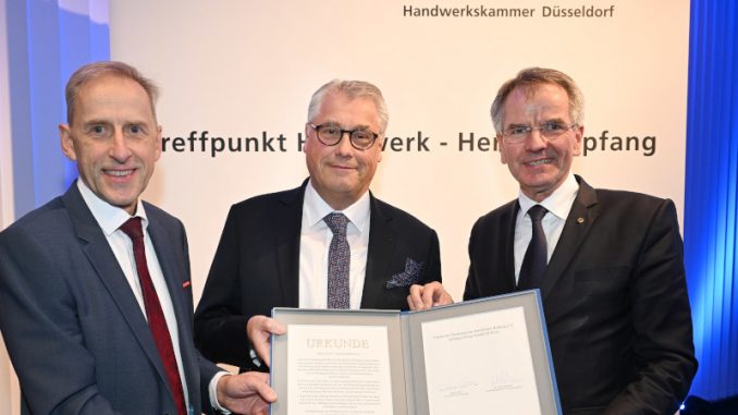 Düsseldorf. Mit nicht nachlassender Dynamik setzt sich Professor Friedrich Hubert Esser für moderne Aus-, Fort- und Weiterbildungsgänge im Handwerk und in der gewerblich-technischen Wirtschaft ein. Jetzt ist der gelernte Handwerksbäcker und studierte Betriebswirt und Wirtschaftspädagoge aus Grevenbroich für seine Verdienste als Förderer des Beruflichen Bildungswesens mit dem Georg-Schulhoff-Preis geehrt worden. Der bei der Handwerkskammer Düsseldorf ansässige „Verein zur Förderung der beruflichen Bildung – Stiftung Georg-Schulhoff-Preis“ vergab die mit 10.000 Euro dotierte Auszeichnung seit 1985 damit zum 23. Mal.