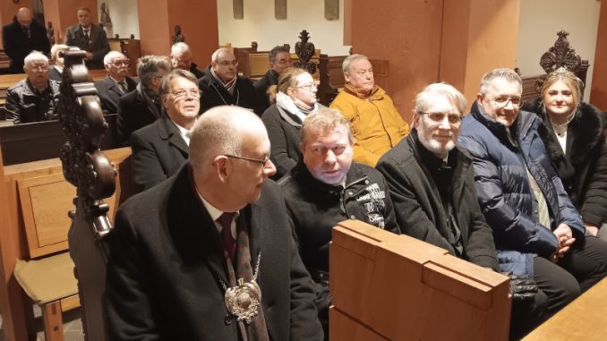 Lintorf. Am Freitagabend war die St. Sebastianus Schützenbruderschaft Lintorf 1464 wieder beim Gottesdienst des Bezirksverbands Düsseldorf-Nord/Angerland in Kaiserswerth. Lintorfs Schützenchef Andreas Kellersmann, König Andreas Nieß und Leonie Müller, von Kronprinz Julian Bohne zur Kronprinzessin gewählt, feierten gemeinsam mit insgesamt rund 25 Lintorfer Schützen den Abend in der Basilika der katholischen Kirchengemeinde in Kaiserswerth.