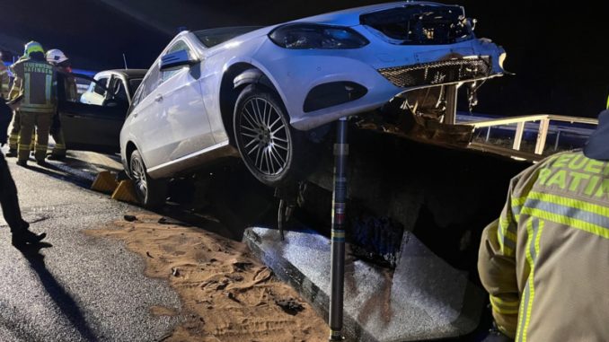 Ratingen. Am Freitagabend, 6. Dezember, 20:10 Uhr wurde die Feuerwehr Ratingen zu einem schweren Verkehrsunfall auf die A3 alarmiert. Auf der Überleitung der Fahrtrichtung Köln auf die A44 war es zum Zusammenprall von zwei Autos gekommen. Eines der Fahrzeuge war in Folge dessen auf der Beton-Leitwand der Fahrbahnbegrenzung zum Stehen gekommen.