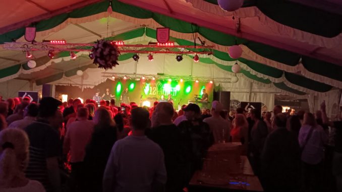 Nach anderthalb Stunden und einer kurzen Pause übernahm 12Inch aus Krefeld die Bühne. Die Musiker hatten keine Probleme, die Stimmung im Zelt noch einmal zu steigern. Das Publikum sang die bekannten Lieder aus Rock und Pop vielstimmig mit.