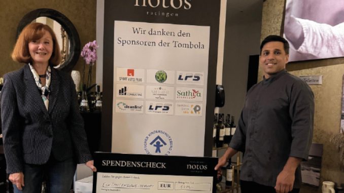 Ratingen. Das griechische Restaurant „notos“ feierte in der Kokkolastraße 1a sein zehnjähriges Jubiläum. Dabei wurde für den guten Zweck gespendet und eine Tombola mit vielen tollen Preisen ins Leben gerufen. Nun konnte nun ein Spendenscheck über 1.200 Euro an die erste Vorsitzende des Ratinger Kinderschutzbundes Rita Trudslev übergeben werden. „Wir freuen uns sehr, mit dieser Spende den Verein unterstützen zu können“ sagte Sobair Aman, Inhaber und Geschäftsführer des Restaurants „notos“.