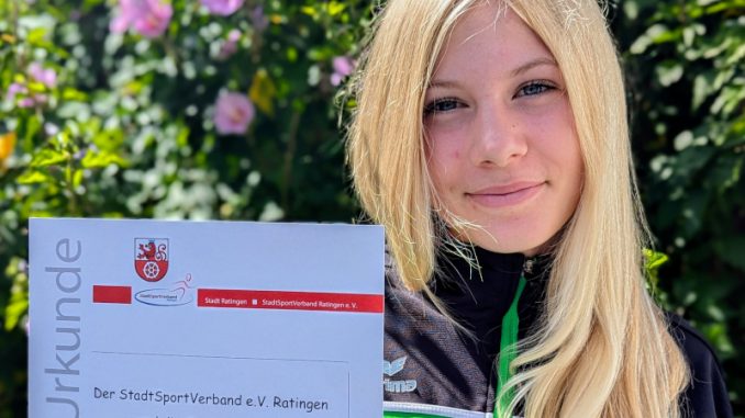Lintorf. Die Leichtathletin Lucy Müller vom TuS 08 Lintorf wurde beim diesjährigen Tag des Sports vom Stadtsportverband Ratingen und von der Stadt Ratingen für ihre herausragenden Leistungen in der Leichtathletiksaison geehrt. Müller gelang sowohl in der Halle, als auch unter freiem Himmel über 800 Meter in der Altersklasse U16 jeweils die Bronzemedaille bei den Landesmeisterschaften zu erlaufen.