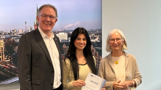 Lintorf. Am vergangenen Donnerstag wurde Khlud Hussein, Auszubildende des TuS 08 Lintorf, bei der IHK Düsseldorf geehrt für ihren Einsatz als internationale Ausbildungsbotschafterin.