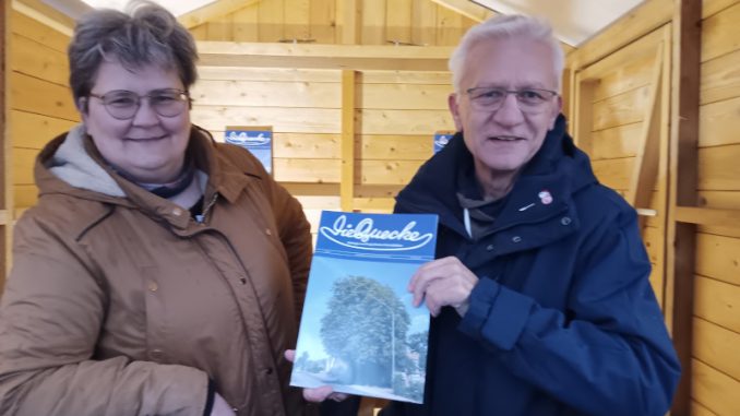 Auf der Drupnas hatten die Lampisten wieder zum großen Weihnachtssingen eingeladen. Eine Weihnachtshütte unter den Bäume hatte der Veranstalter dem Verein Lintorfer Heimatfreunde angeboten, um die aktuelle Jahresausgabe Quecke 2024 anzubieten. Monika von Kürten und Andreas Preuß vom Vorstand der Heimatfreunde boten die Quecke gerne an.